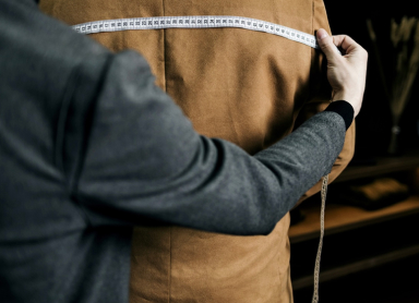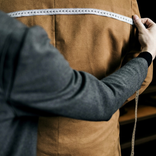 オーダースーツの採寸は、単なる計測ではありません。理想のシルエットと快適な着心地を生み出すための、重要なプロセスです。肩幅や胸囲、袖丈といった基本の寸法から、動きやすさを叶える細やかなポイントまで丁寧に測定。体型の特徴やお好みのフィット感に合わせた一着を仕立てるために、細部までこだわります。